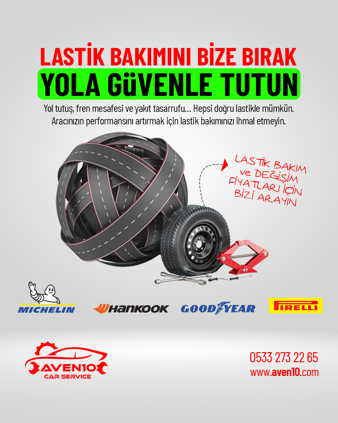 Kaliteli ve uygun fiyatlı lastik arayışında olan Mazda sahipleri için Aven10 Oto Servis olarak ikinci el lastik hizmeti sunuyoruz. Her bir lastik, diş derinliği, üretim tarihi ve yapısal sağlamlığı açısından titizlikle kontrol edilir. Adana Mazda özel servis çatısı altında sunduğumuz bu hizmet sayesinde hem bütçenizi korur hem de sürüş güvenliğinizden ödün vermezsiniz. Dilerseniz lastiklerinizin balans ayarı da yapılır ve jant uyumu profesyonelce sağlanır. Kullandığımız ekipmanlarla sorunsuz ve hızlı bir montaj gerçekleştirilir. İkinci el lastik hizmetimizle ekonomik çözümleri kaliteyle buluşturuyoruz.